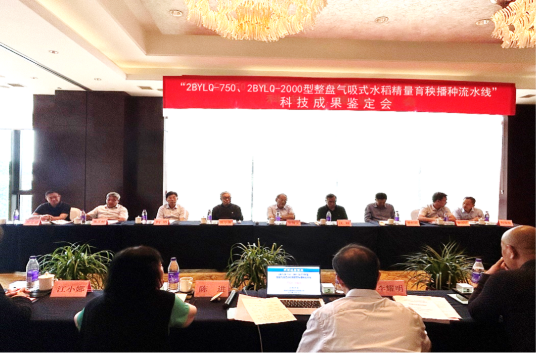 9月16日,中国机械工业联合会在常州市主持召开科技成果鉴定会,由开云网页版登录入口和常州市风雷精密机械有限公司共同完成的“2BYLQ-750、2BYLQ-2000型整盘气吸式水稻精量育秧播种流水线”顺利通过科技成果鉴定。