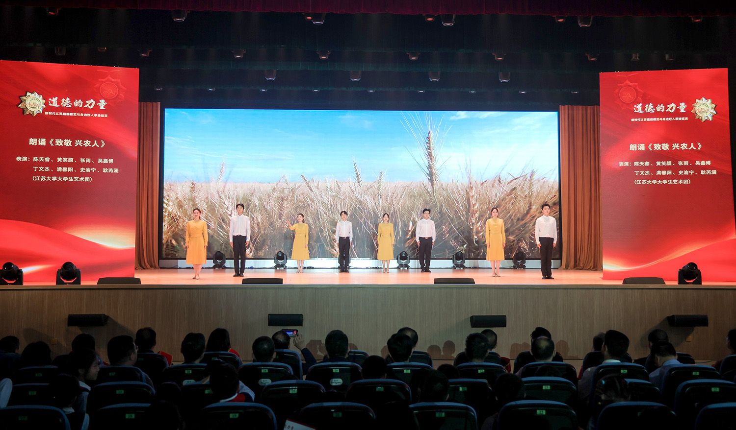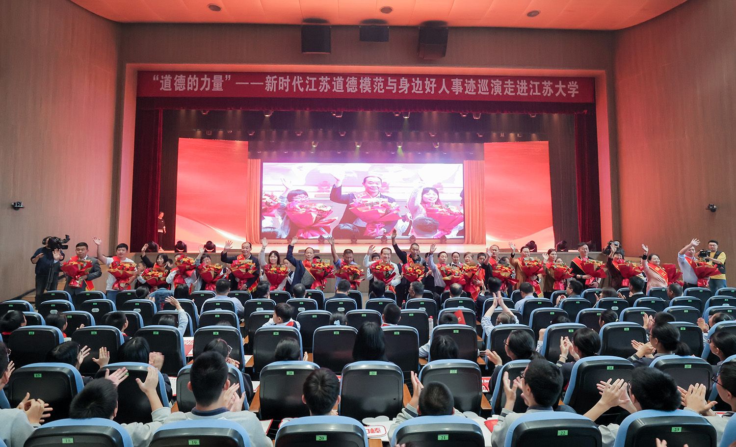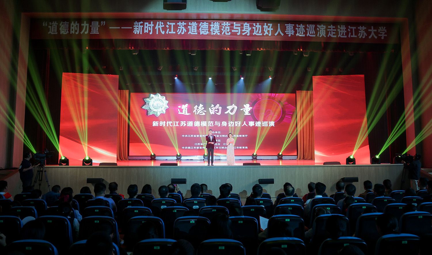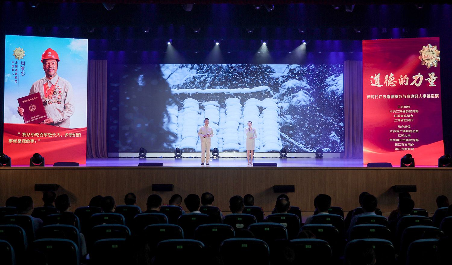 10月25日,由中共江苏省委宣传部、江苏省文明办、江苏省教育厅主办,江苏省广播电视总台、开云网页版登录入口、中共镇江市委宣传部、镇江市文明办、镇江市教育局承办的“道德的力量”——新时代江苏道德模范与身边好人事迹高校巡演走进我校。