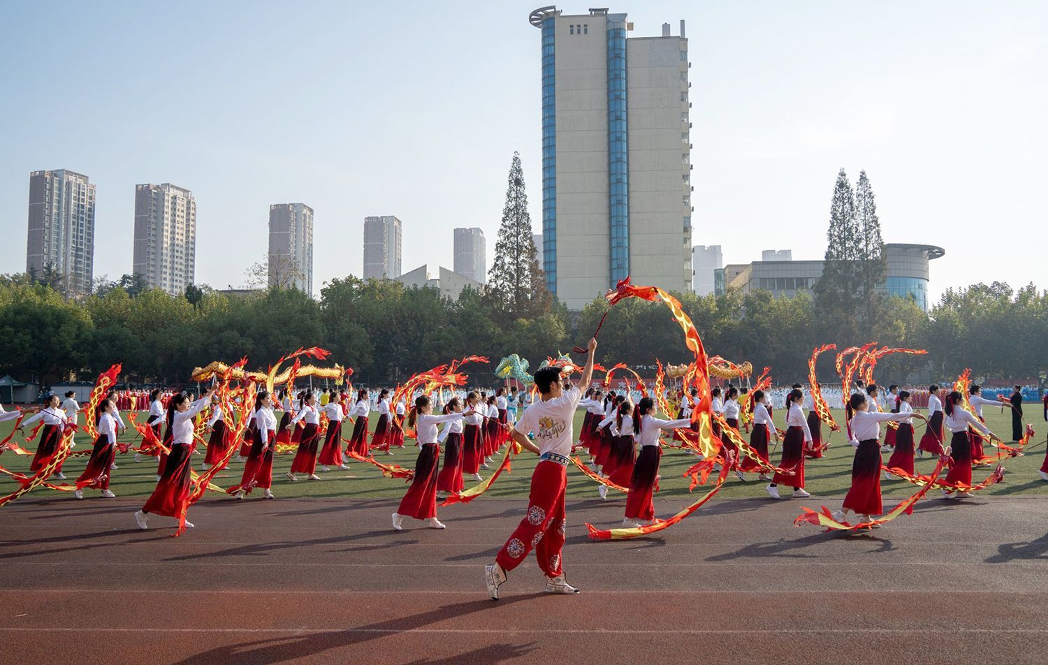 张济建宣布开云网页版登录入口第二十二届运动会开幕。开幕式上,学生进行了舞龙舞狮、排舞表演,教职工进行了太极扇等表演。