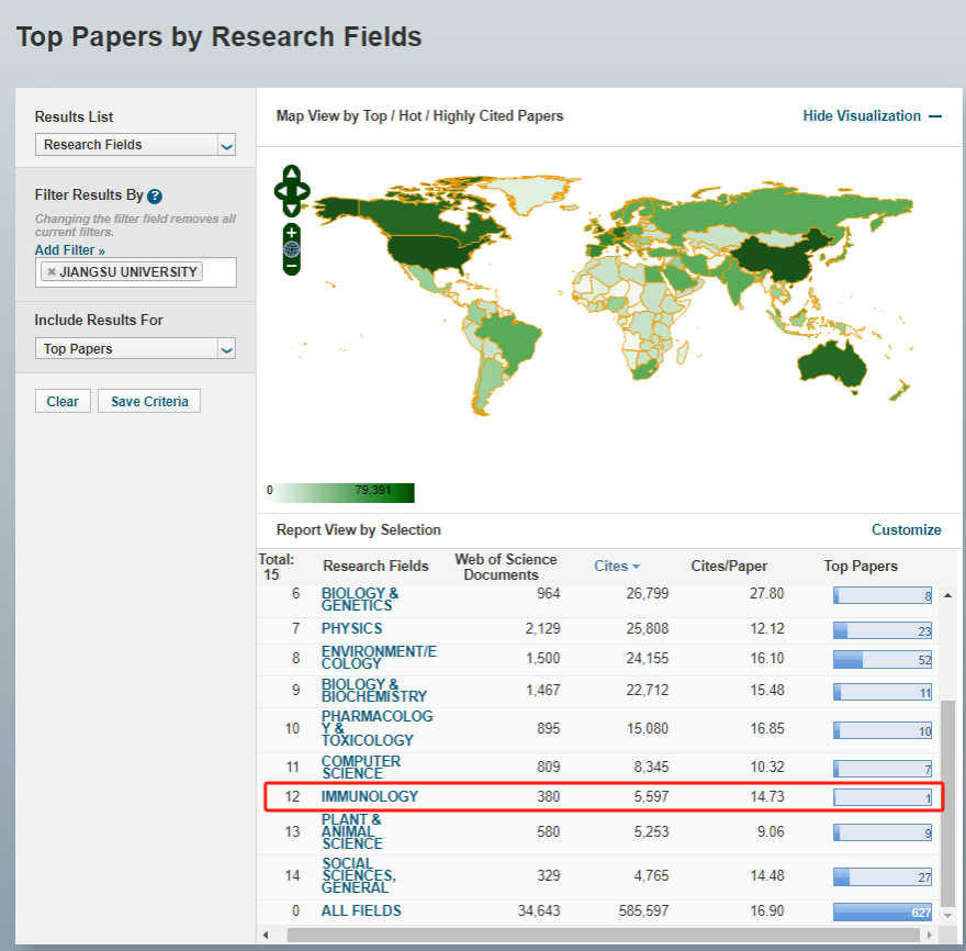 近日,科睿唯安发布了最新ESI数据,全球共有8917家科研机构上榜,其中包含432所中国内地高校。数据显示,开云网页版登录入口免疫学学科首次进入ESI全球排名前1%。截至目前,我校进入ESI全球前1%的学科数达14个,其中工程学、化学、农业科学3个学科排名前1‰。