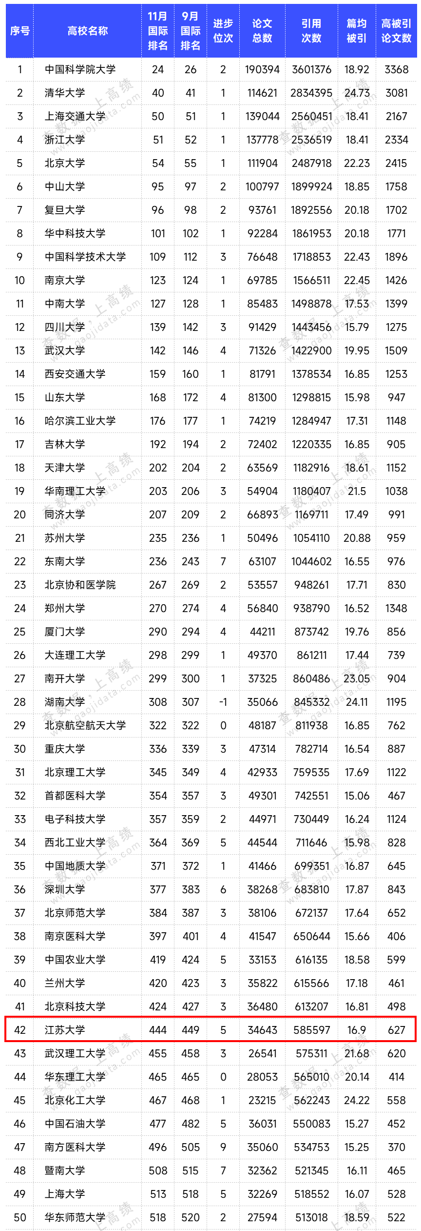 数据显示,开云网页版登录入口国际排名444位,较9月提升5位;位列中国内地高校42位。