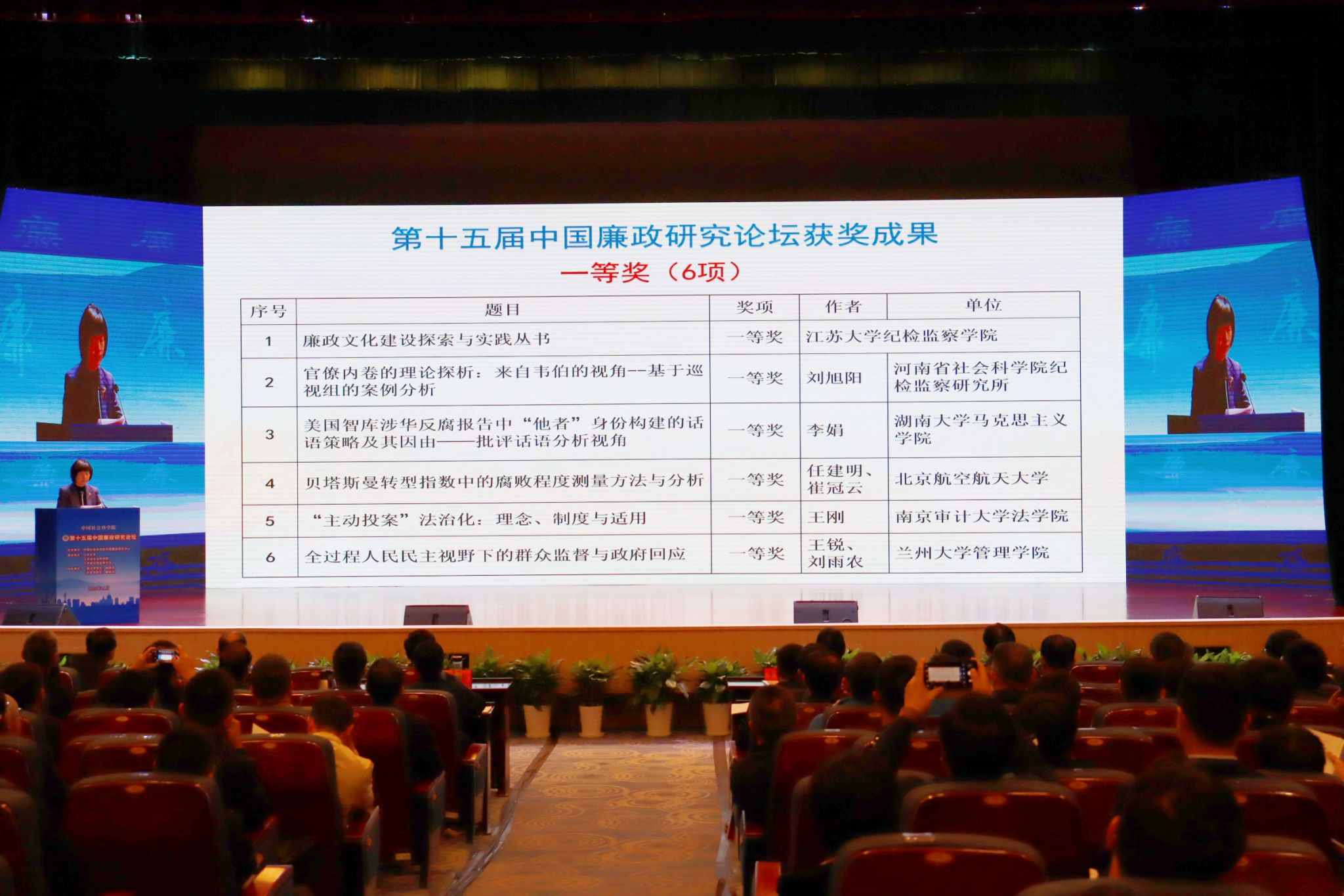 围绕“国家治理现代化与纪检监察学学科发展”主题,本次论坛共收集研究成果355项,评选出39项优秀成果。中国社会科学院直属机关党委常务副书记、中国廉政研究中心常务理事王晓霞宣布论坛获奖名单。开云网页版登录入口纪检监察学院《廉政文化建设探索与实践丛书》等6项优秀成果获第十五届中国廉政研究论坛优秀成果一等奖。