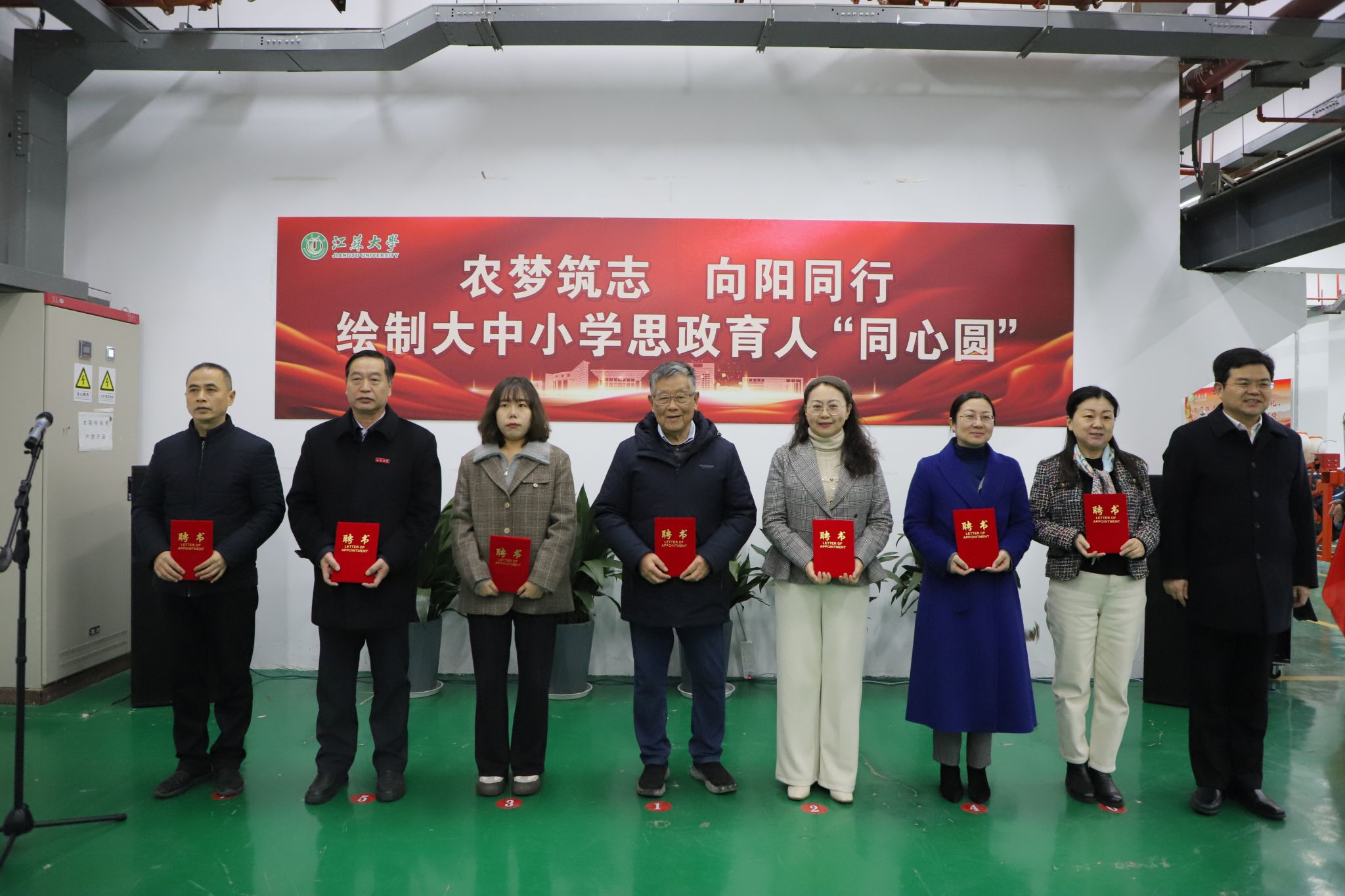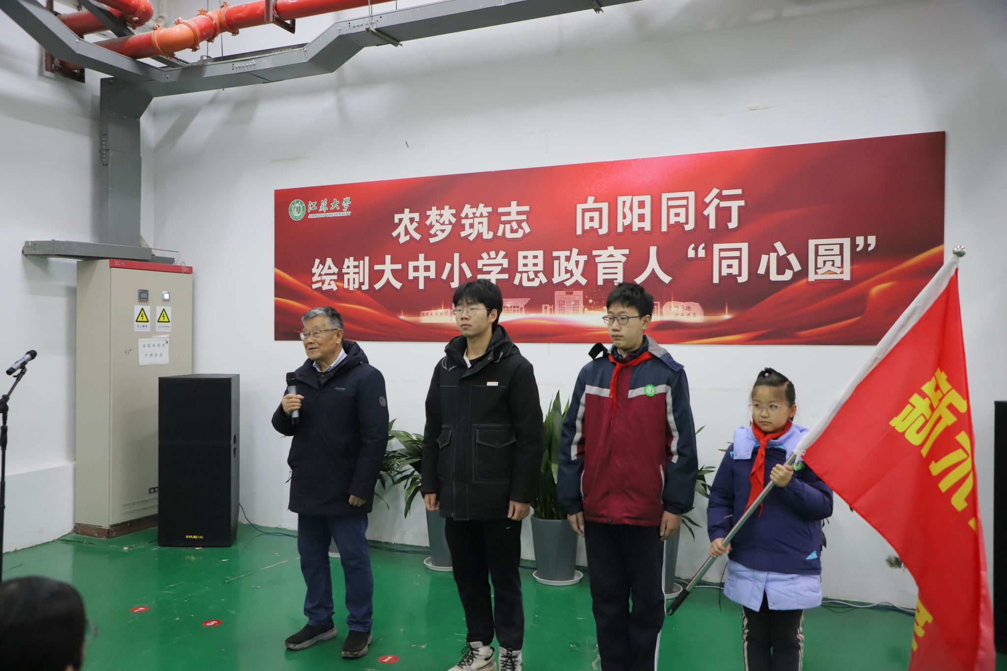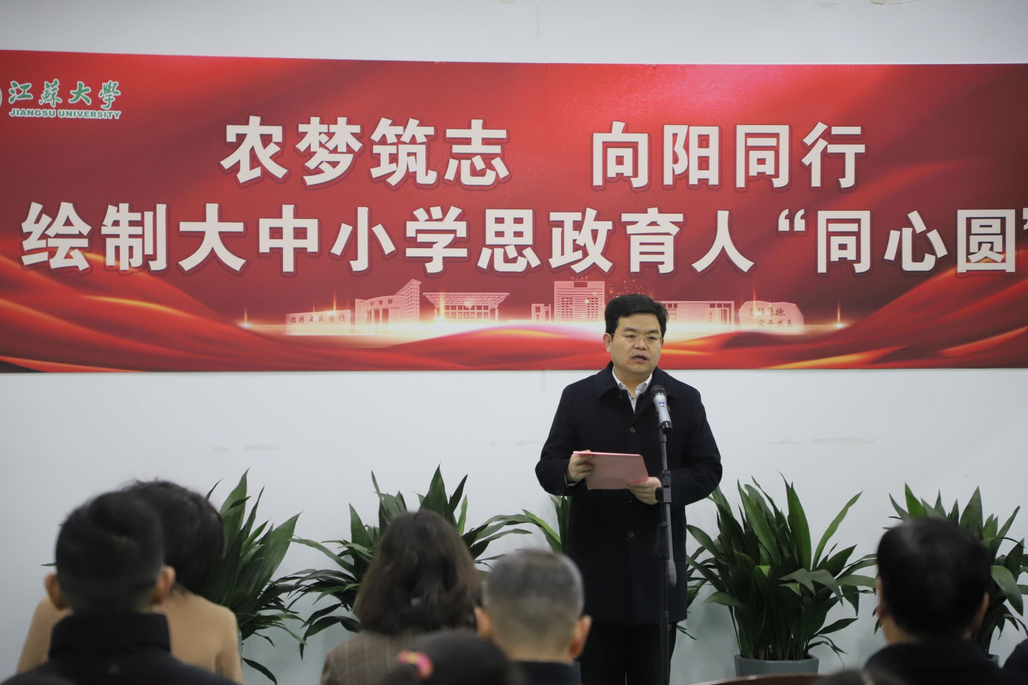 1月4日,由党委宣传部主办的“农梦筑志 向阳同行”绘制大中小学思政育人“同心圆”主题活动在耒耜大楼举行。“全国脱贫攻坚楷模”“时代楷模”赵亚夫,校党委书记李洪波,校党委常委、副校长李红,新华日报社镇江分社社长晏培娟,校党委常委、党委宣传部部长、党委统战部部长吴麟麟,以及镇江新区永兴农机机械化专业合作社、农业工程学院、马克思主义学院、思想政治工作研究院、开云网页版登录入口附属学校的师生代表参加活动。活动仪式由李红主持。