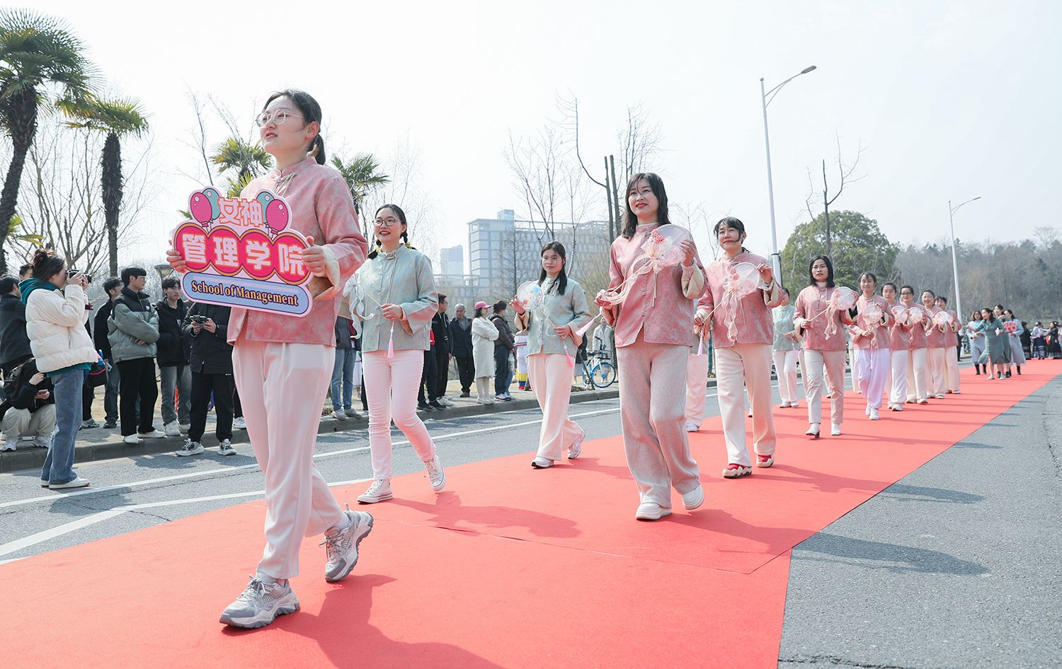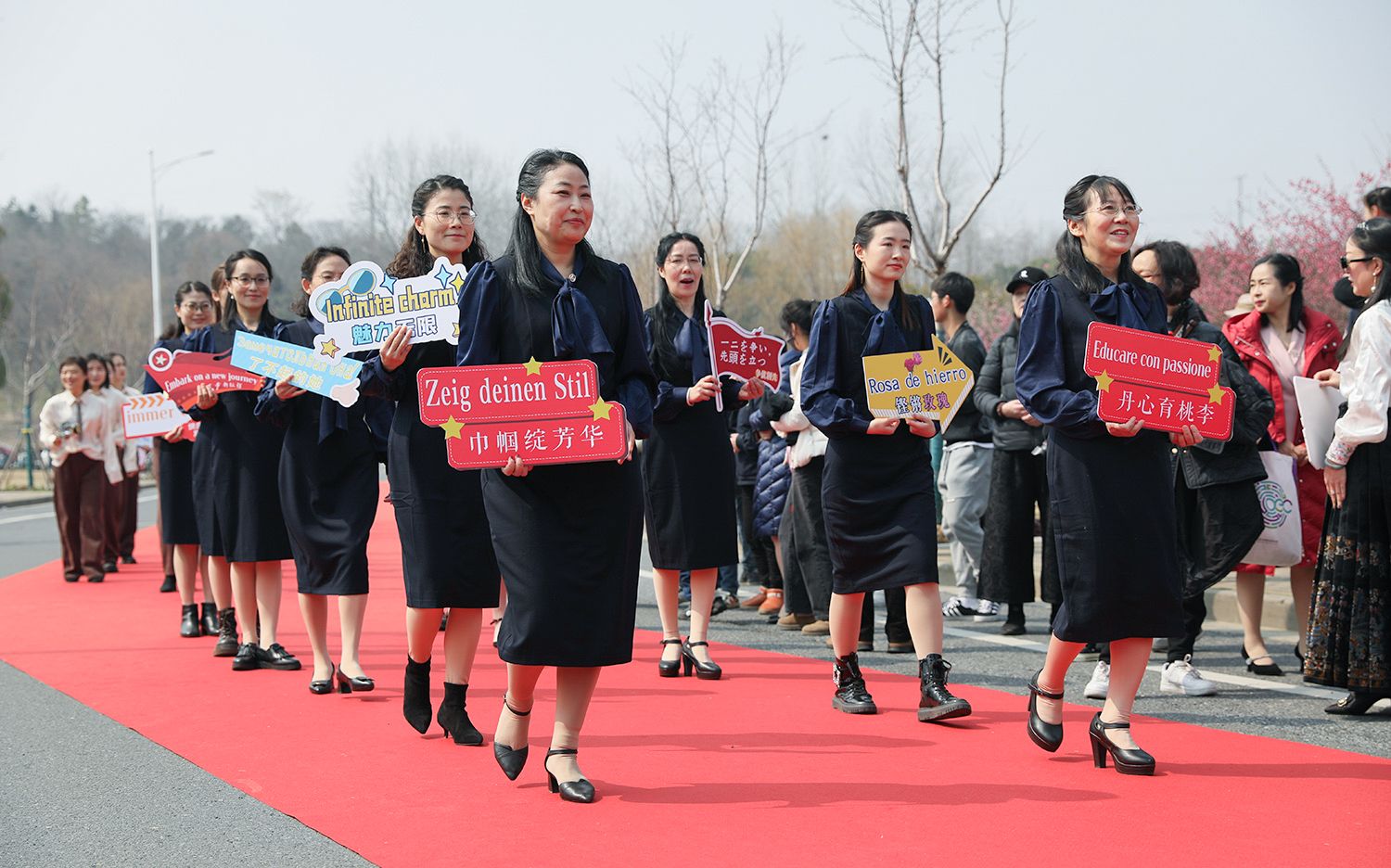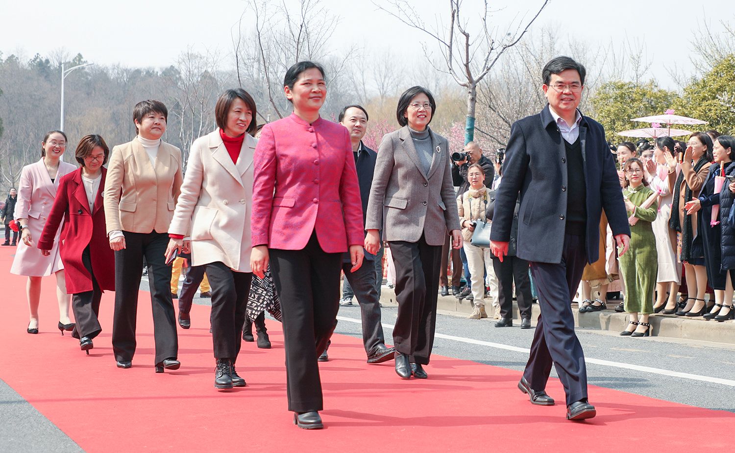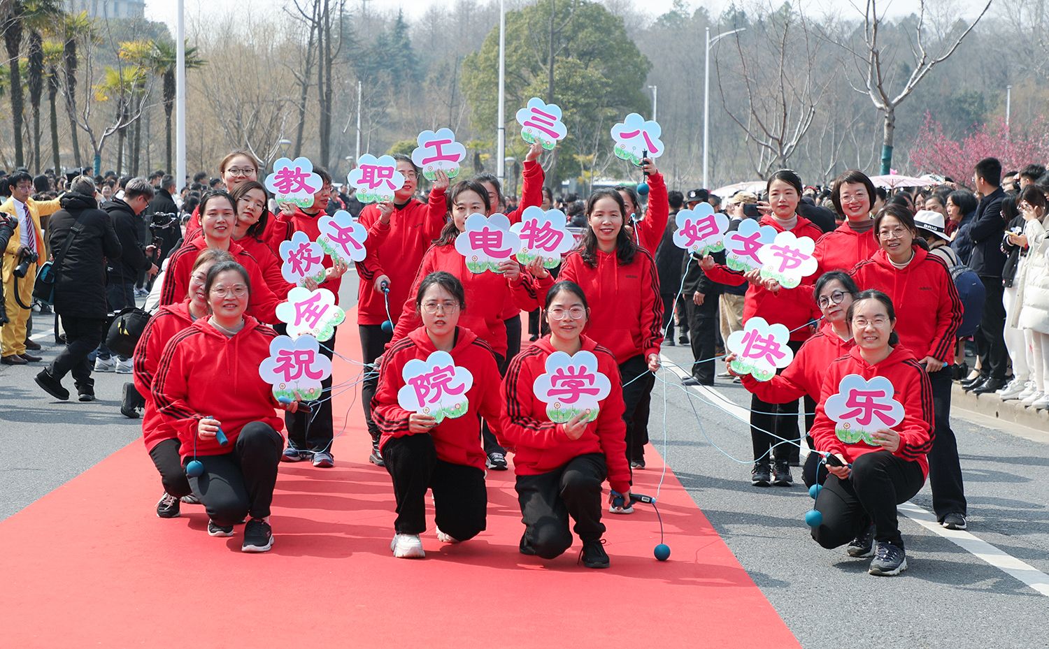 早春开云(中国),处处是生机勃勃的景象。3月8日,是第114个国际劳动妇女节,学校在梅园举办“美丽邂逅,梦想绽放”庆祝“三八”国际妇女节活动暨首届梅樱节开幕式。由女教工、女大学生、女企业家组成的33支队伍共聚梅园,借满园春色,用“红毯秀”的形式展示女性风采,庆祝自己的节日。