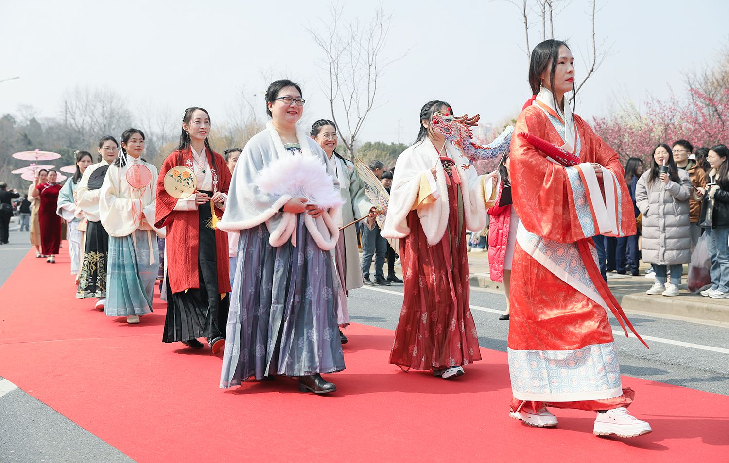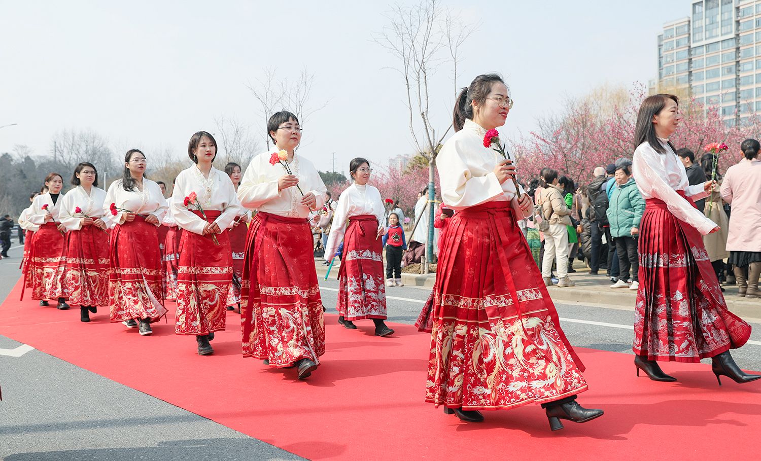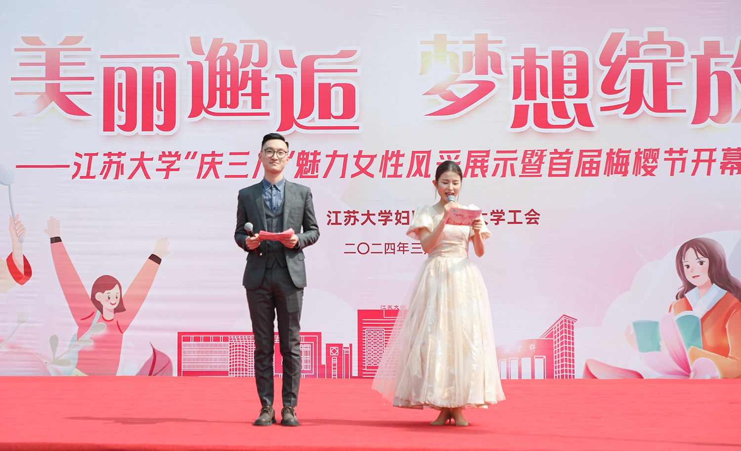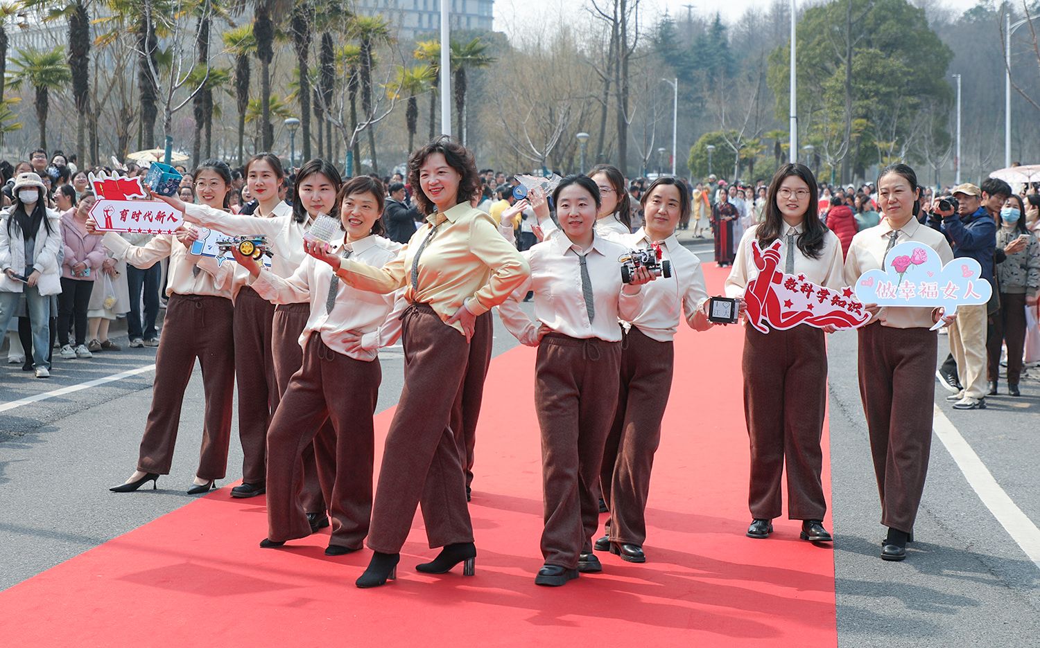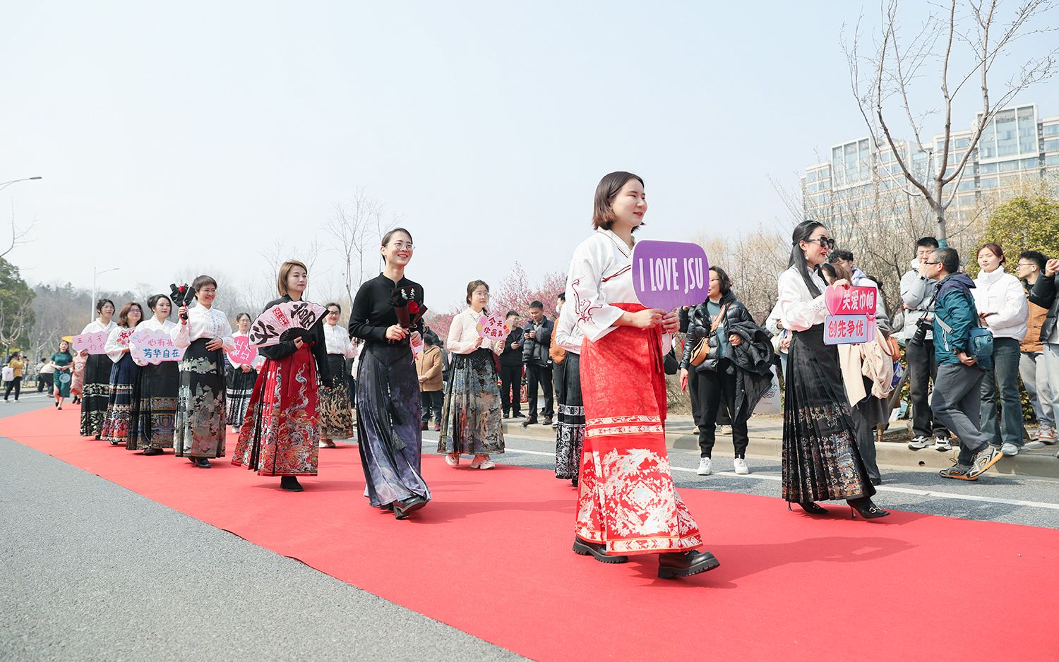 早春开云(中国),处处是生机勃勃的景象。3月8日,是第114个国际劳动妇女节,学校在梅园举办“美丽邂逅,梦想绽放”庆祝“三八”国际妇女节活动暨首届梅樱节开幕式。由女教工、女大学生、女企业家组成的33支队伍共聚梅园,借满园春色,用“红毯秀”的形式展示女性风采,庆祝自己的节日。