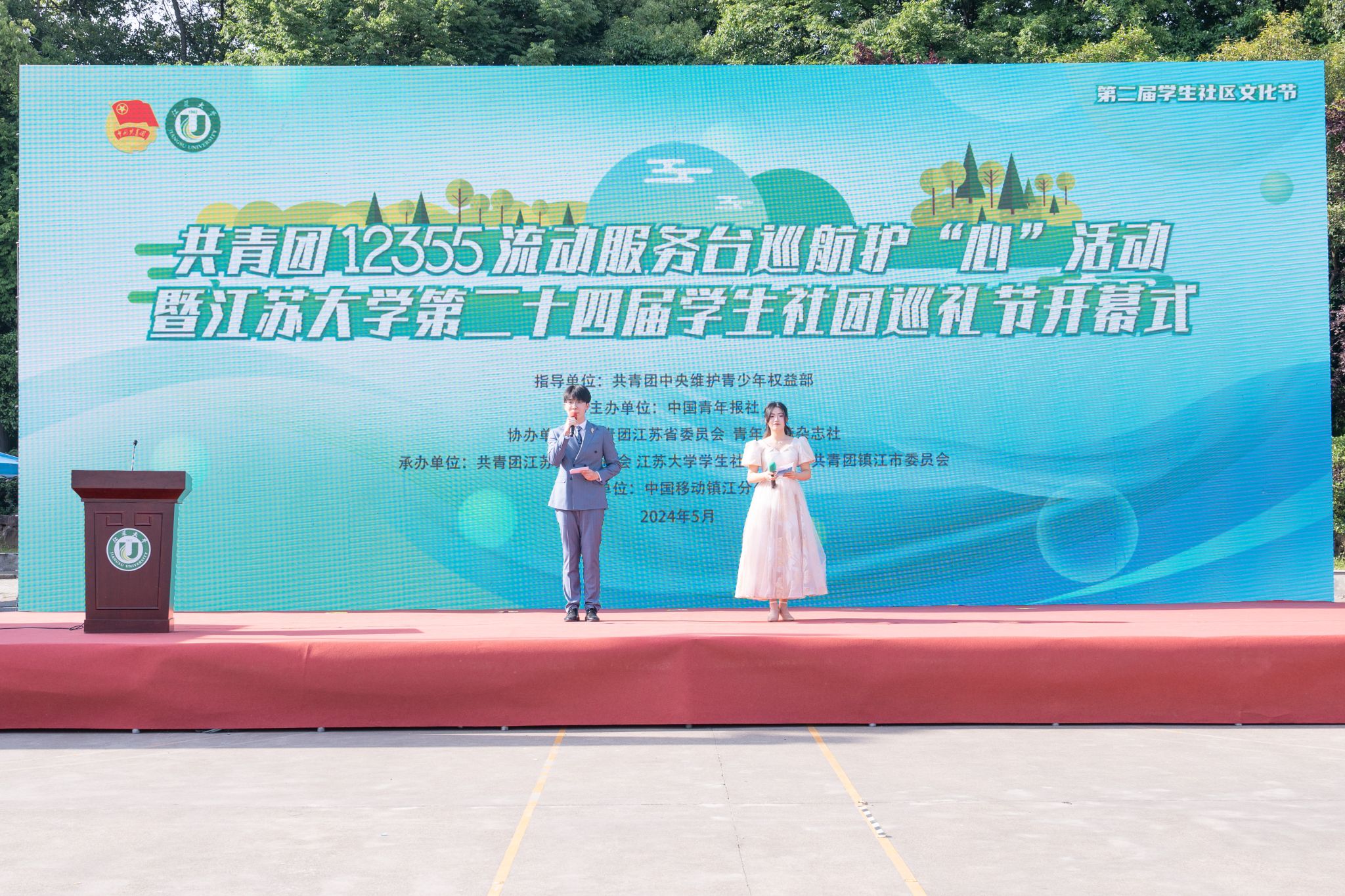 5月13日,共青团12355流动服务台巡航护“心”活动、开云网页版登录入口第二届学生社区文化节暨第二十四届学生社团巡礼节开幕式在西山灯光篮球场举行。