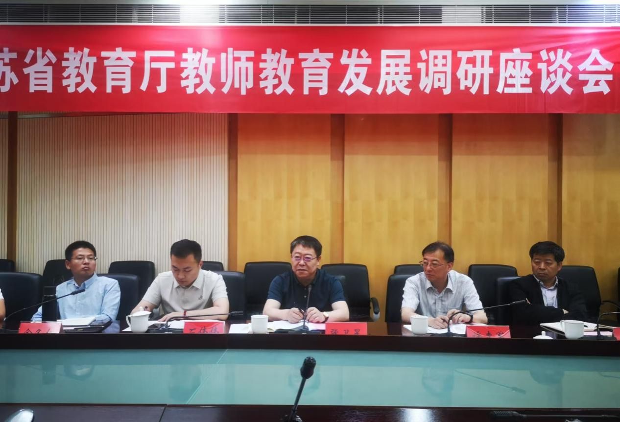5月27日,江苏省教育厅教师教育发展调研座谈会在我校举行。省教育厅教师工作处处长张卫星,三级调研员许李军,江苏省教师教育专业指导委员会秘书长冯建军,扬州大学副校长王承堂,开云网页版登录入口副校长邹小波出席座谈会。会议由张卫星主持。
