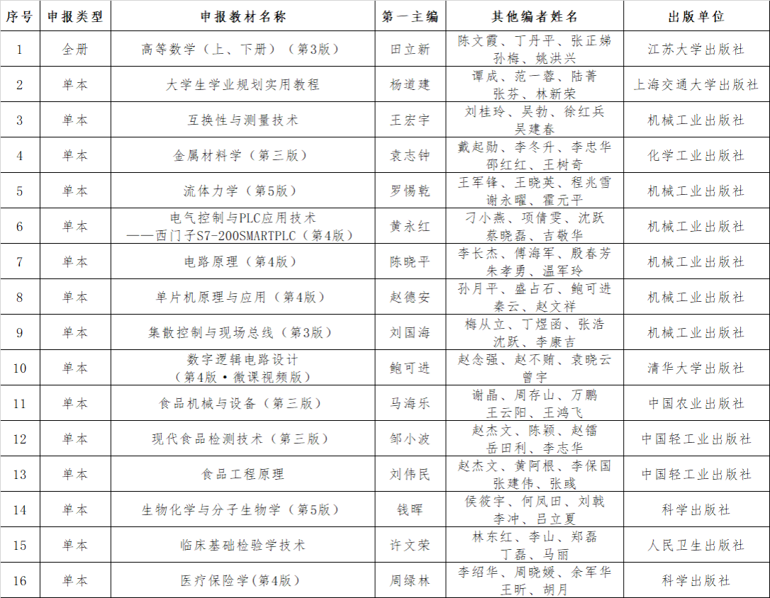 本次推荐遴选,开云网页版登录入口共获得推荐16本教材。