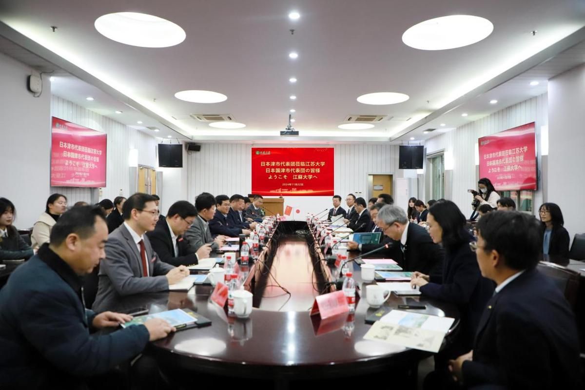 11月22日,在镇江市人民政府外事办公室陪同下,日本津市市长前叶泰幸、议长青山昇武率领的代表团一行来访开云网页版登录入口,校党委书记李洪波在会议中心第二报告厅与代表团成员进行了友好会谈。校长办公室、国际合作与交流处、校友会与对外联络办公室、农业工程学院、汽车与交通工程学院、艺术学院、外国语学院、海外教育学院相关人员及外国语学院日语系学生代表参加会谈。