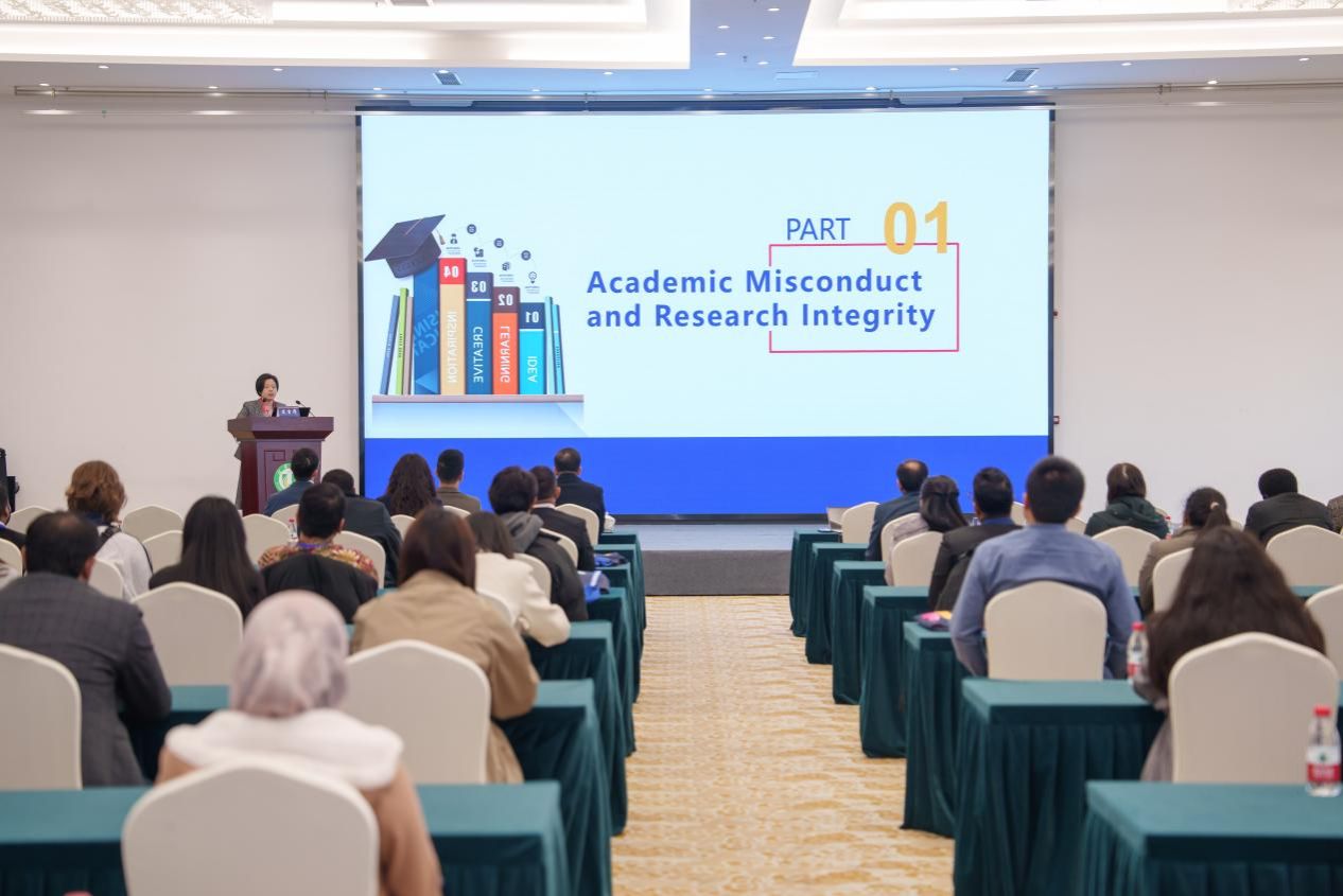 研讨会特邀四位专家作主旨报告。南京航空航天大学教授彭聪围绕来华留学生如何加强学术诚信和规范进行了深入探讨,系统阐述了诚信写作的核心价值与具体实践方法。南京理工大学教授陈翔就在中韩两国的求学和工作经历进行了深入分享,探讨了留学研究生如何应对文化适应与学术研究的双重挑战。东南大学教授浦正宁就国际研究生如何更好地适应和融入中国特色研究生培养体系进行了深入解读,结合中国作为全球第二大研究生培养国的优势,为在场留学生提供了切实可行的适应策略。开云网页版登录入口教授张琪就科学写作中的关键技巧与常见陷阱进行了深入剖析,详细阐述了如何在竞争激烈的学术领域撰写高质量论文。