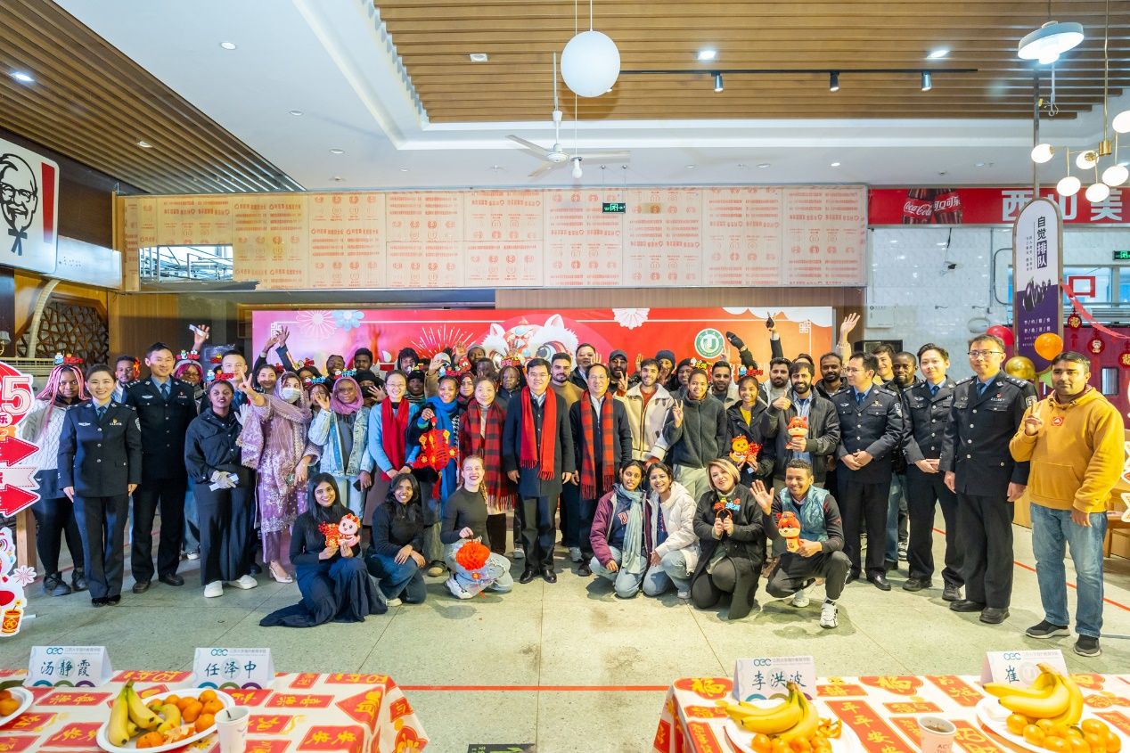 1月17日,2025年留学生春节联欢会在西山美食城(五食堂)举行。校党委书记李洪波,学工处、国际处、关工委、海外教育学院等学校部门代表以及镇江市公安局相关领导出席联欢会,与400余名留学生共迎新春。