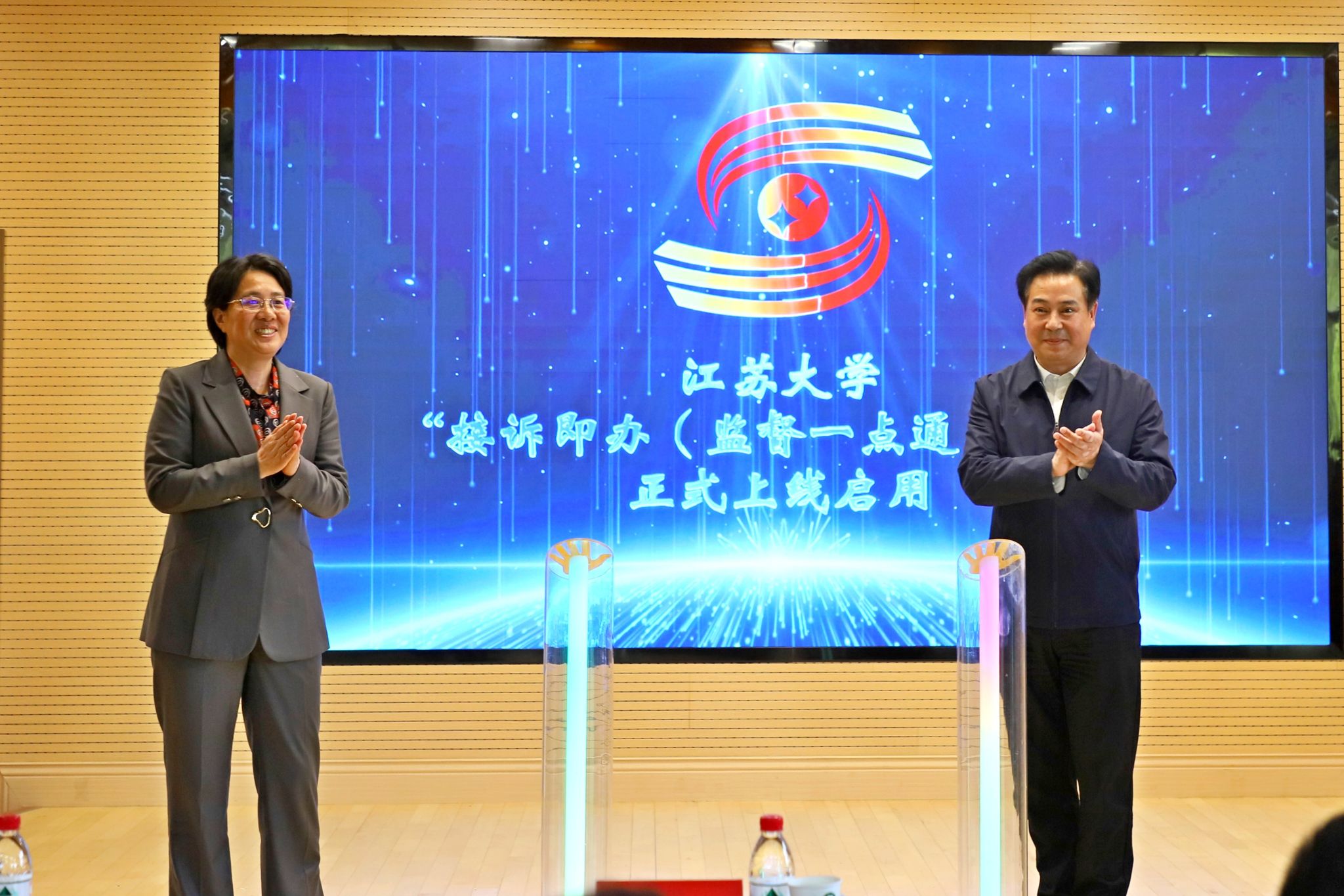 4月8日,学校在学苑楼305报告厅举行“接诉即办(监督一点通)”平台启动仪式。校长邢卫红,校党委常委、纪委书记、省派驻监察专员杜永春出席活动并为平台上线启幕。有关职能部门负责人、各学院(中心、研究院、所)学工副书记、书院党总支(副)书记及学生代表等150余人参加活动。仪式由校纪委副书记夏民主持。