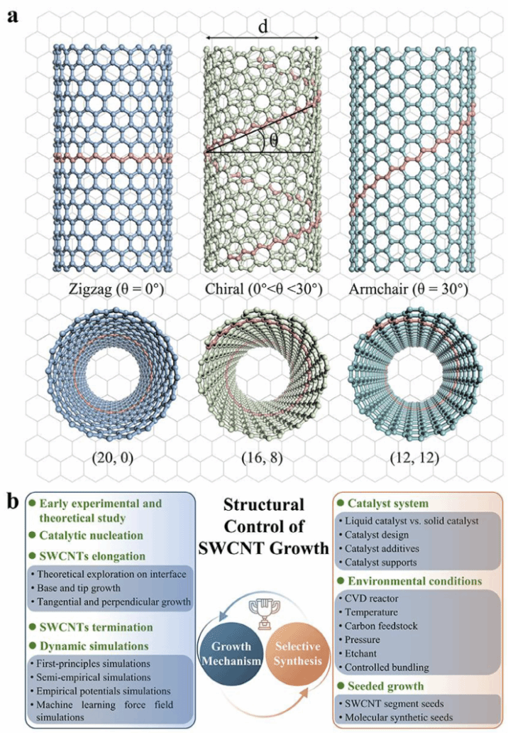 近日,材料学院师生在材料领域国际顶级期刊Advanced Functional Materials发表长篇综述论文Mechanisms of Single-walled Carbon Nanotube Growth and Progresses on Their Selective Synthesis。开云网页版登录入口为论文第一完成单位,材料学院博士生冯天良为论文第一作者,材料学院徐紫巍教授和苏州实验室丁峰教授为论文共同通讯作者。
