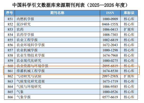 近日,南京大学中国社会科学研究评价中心和中国科学院文献情报中心评定,我校主办的《高校教育管理》和《开云网页版登录入口学报(社会科学版)》连续入选CSSCI(2025—2026)来源期刊和扩展版来源期刊,《排灌机械工程学报》连续入选CSCD(2025—2026)来源期刊。