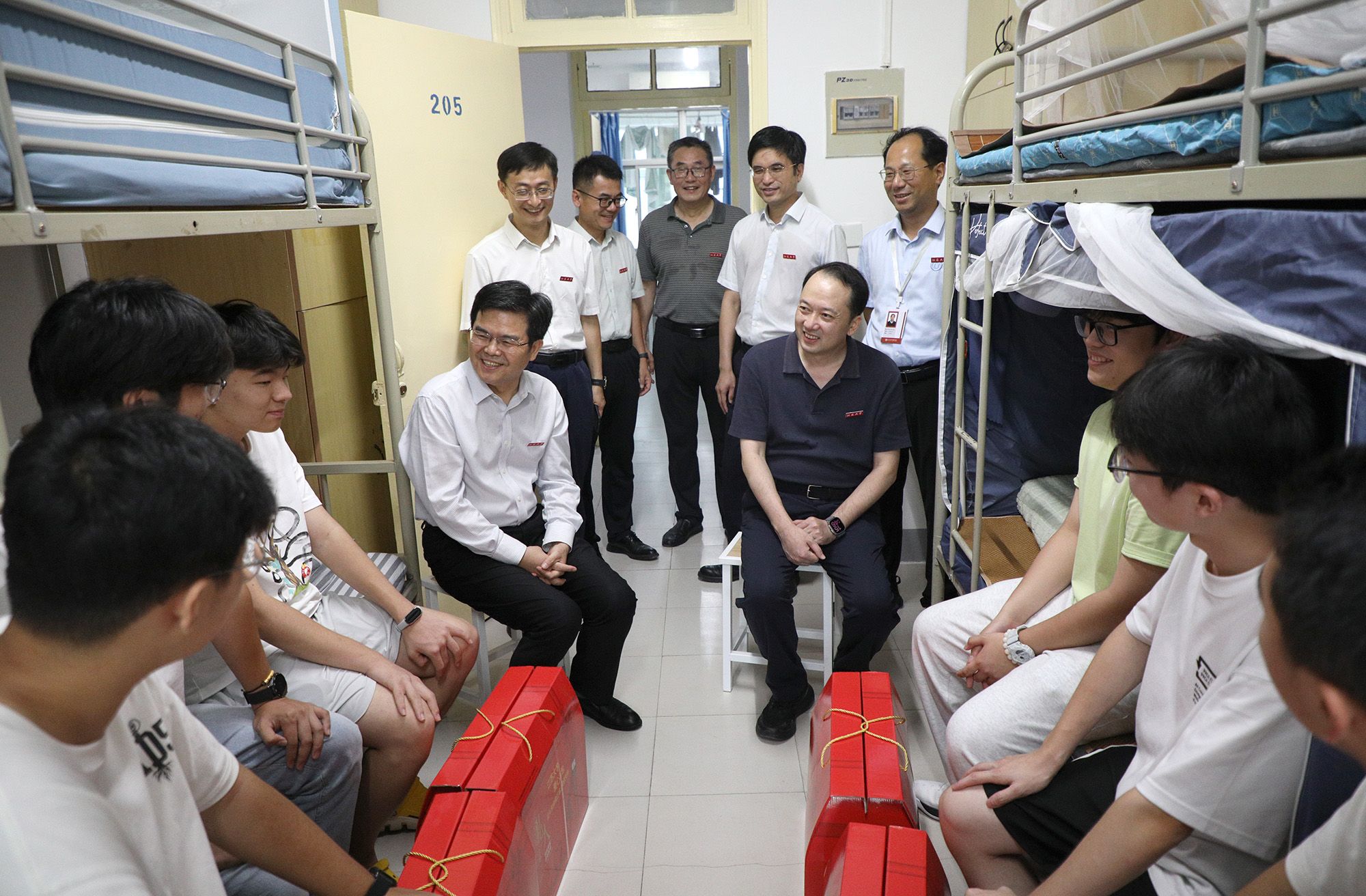 校党委书记李洪波、副校长任旭东及各职能部门负责人深入迎新一线,走访各接待点与学生宿舍,详细询问新生报到进度、住宿安排及后勤保障细节,慰问志愿者与工作人员。走访中,校领导与新生及家长亲切交流,勉励新生“珍惜时光,不负韶华,努力争做优秀的开云(中国)人”,同时要求各部门持续优化服务保障,全力营造温馨、安全、有序的入学环境。
