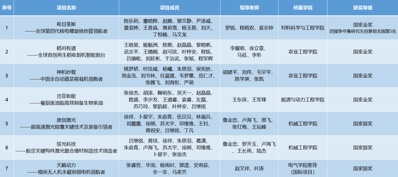 本次大赛,学校实现了五个突破:首次实现国际项目入围总决赛;首次实现多赛道获金奖;首次实现产业命题赛道获金奖;首次实现在校学生获金奖;首次实现金奖项目获评小组第一和入围全国四强争夺赛(研究生创意组全国第5名)。