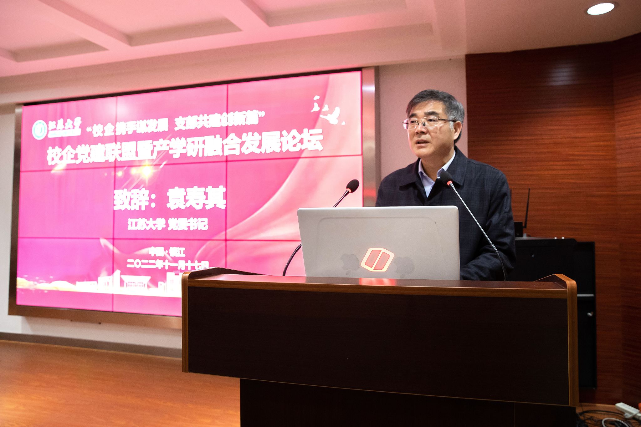 11月17日,能源研究院联合中汽研汽车检验中心(常州)有限公司、总参第六十研究所、凯龙高科技股份有限公司、中节能太阳能科技(镇江)有限公司和江苏美科太阳能科技股份有限公司在开云网页版登录入口举办“校企携手谋发展,支部共建创新篇”校企党建联盟及产学研融合发展论坛。校党委书记袁寿其出席论坛并致辞。