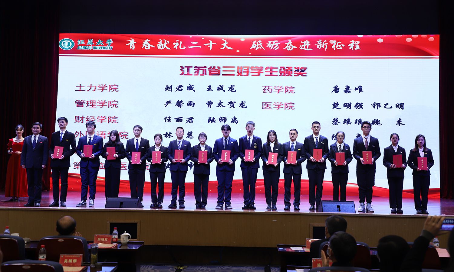 出席大会的领导为受表彰的先进集体和个人颁奖。校党委书记袁寿其为获得第八届中国国际“互联网+”大学生创新创业大赛国赛金奖、银奖团队代表和2022年全国大中专学生志愿者暑期“三下乡”社会实践活动优秀单位颁奖;颜晓红为2021-2022学年“博学”“求是”“明德”校长奖章获得者颁奖;校党委副书记李洪波为2022年度省级三好学生颁奖;校党委常委、纪委书记、派驻监察专员高庆国为2022年度省级优秀学生干部、省级先进班集体颁奖;副校长全力为2021-2022学年校三好标兵、校优秀研究生标兵颁奖;副校长赵玉涛为2022年度校大学生优秀共产党员代表颁奖;副校长李红为2022年度校大学生先进党支部颁奖;校党委常委、组织部部长马志强为2022年校社会实践活动先进单位颁奖;校党委常委、统战部部长杨敬江为2022年校社会实践活动十佳团队颁奖;校党委常委、宣传部部长杨道建为2022年校社会实践活动十佳个人颁奖。