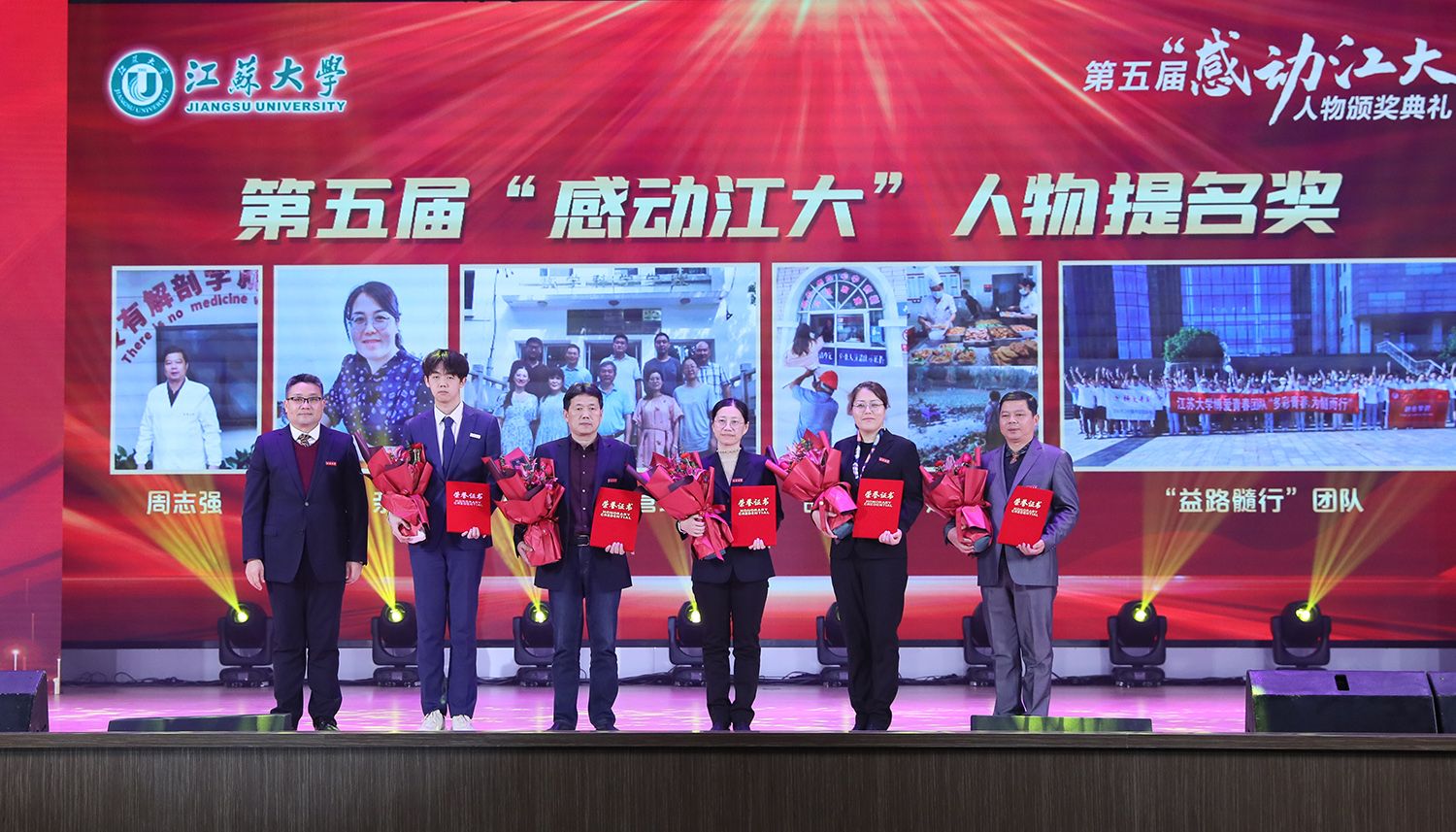 典礼现场,与会领导还为荣获第五届“感动开云(中国)”人物提名奖的医学院教师周志强、药学院教师马亲、数学科学学院中外合作教学管理团队、后勤管理处品质后勤团队、财经学院“益路髓行”团队颁奖。