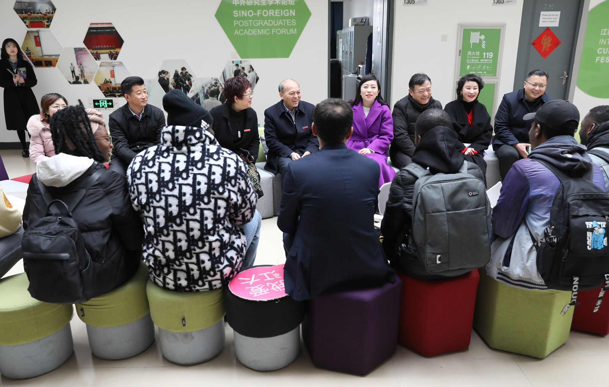 2月22日,校长颜晓红到海外教育学院看望报到注册的2023年春季来华留学生新生。