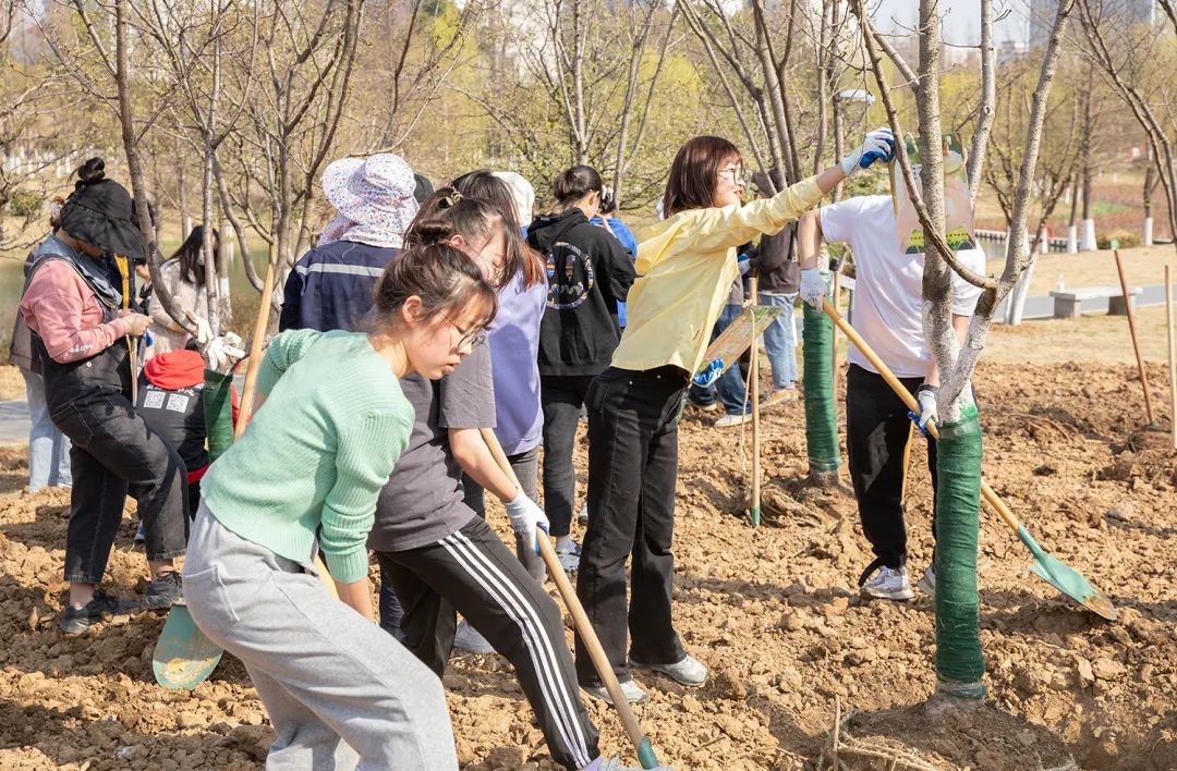3月10日,在第45个植树节到来之际,学校开展植树活动。校长颜晓红,校党委副书记李洪波,副校长田立新、赵玉涛、李红、邹小波,校党委常委、统战部部长杨敬江,校党委常委、宣传部部长杨道建等,与来自菁英学院、校级学生组织、第五期大学生骨干培训班、校友会、后勤处的60余名师生共同在学子林北侧和健身步道入口预留地植下新绿。