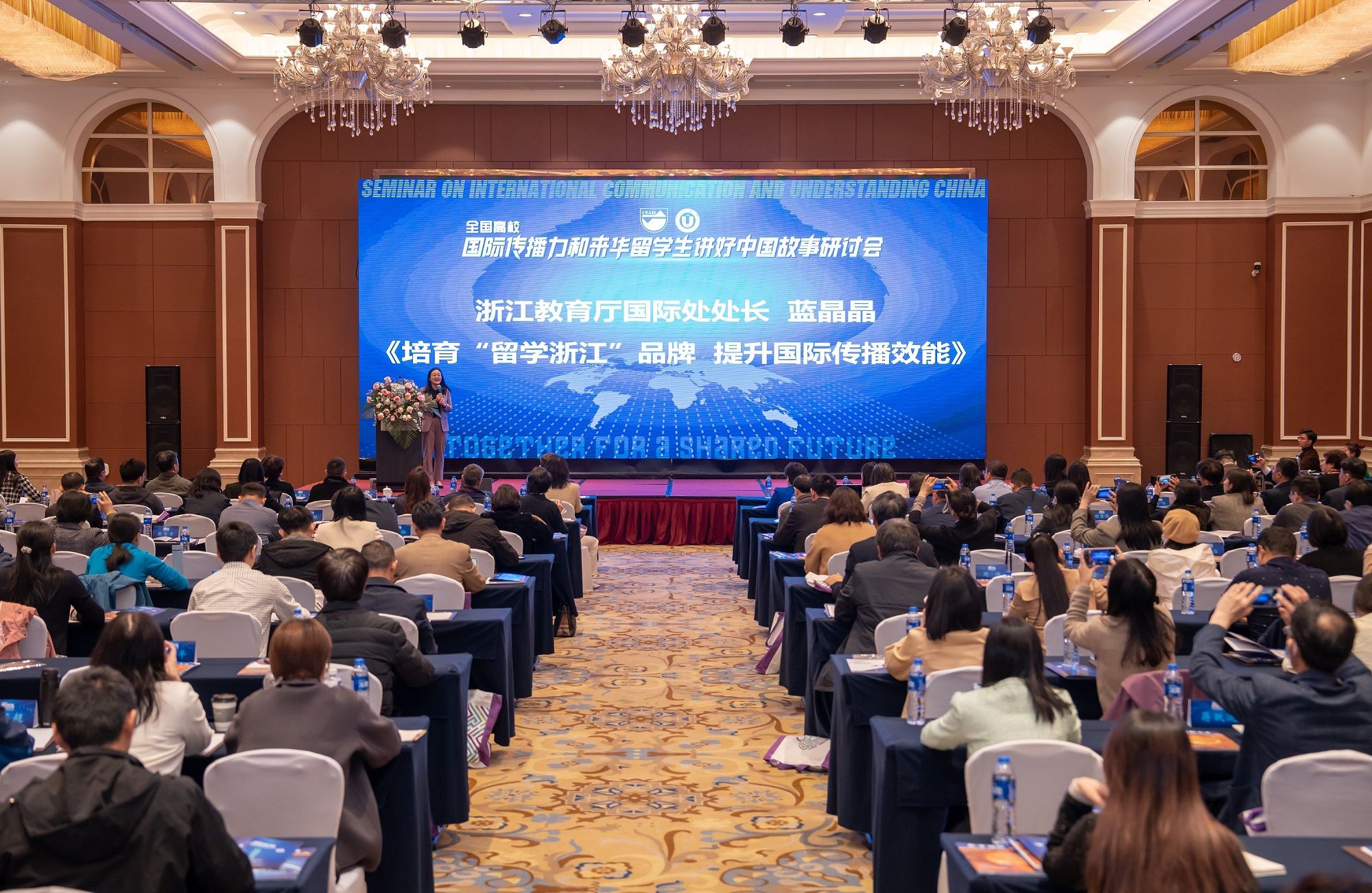 主旨报告环节,中国传媒大学人类命运共同体研究院副院长姬德强、浙江省教育厅国际合作与交流处处长蓝晶晶、我校海外教育学院院长高静分别以“中国国际传播的元叙事和舆论场”、“培育‘留学浙江’品牌,提升国际传播效能”、“读懂中国-高质量来华留学助力国际传播效能的提升”进行分享,围绕如何讲好中国故事以及加强和改进国际传播工作,从学术领域、政府主管部门、来华留学教育一线的不同角度表达真知灼见。海外教育学院直属党支部书记黄婷主持主旨报告环节。