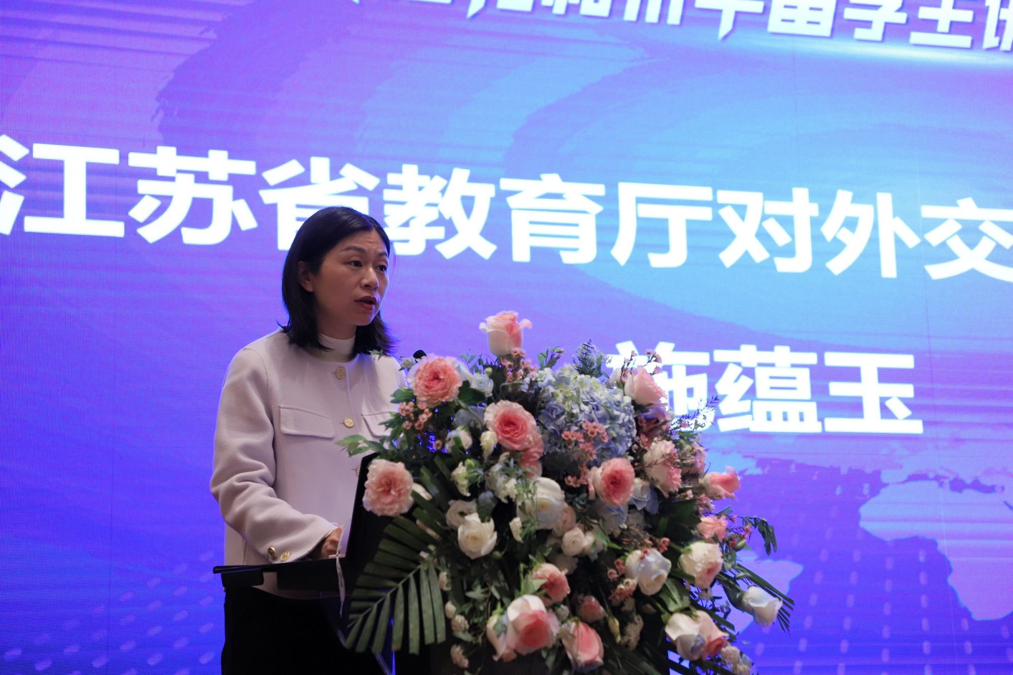 施蕴玉介绍了江苏省教育厅组织省内高校加强国际传播能力、讲好中国故事搭建平台的各项工作举措。她指出,江苏省高校主动优化布局,发挥资源优势,在讲好中国故事、参与全球治理等方面持续发挥引领作用,向留学生展示真实、立体、全面的中国,推进来华留学生教育持续高质量发展,在形成江苏对外开放新格局的同时,为我省经济社会发展提供了国际化人才支撑。
