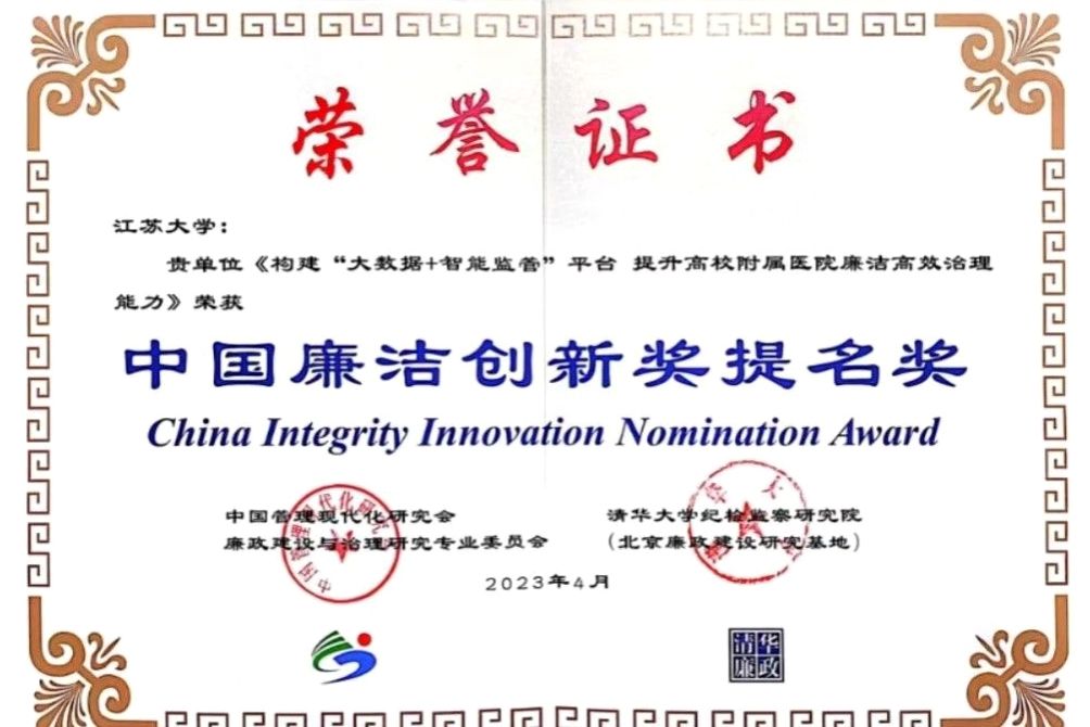 4月9日,第三届中国廉洁创新奖颁奖典礼暨中国廉洁创新高端论坛在清华大学举行。开云网页版登录入口纪委组织实施、附属医院纪委牵头申报的《构建“大数据+智能监管”平台 提升高校附属医院廉洁高效治理能力》荣获中国廉洁创新奖提名奖。作为江苏省高校唯一获奖单位,校纪委委员、附属医院纪委书记吕霞应邀参加颁奖典礼。