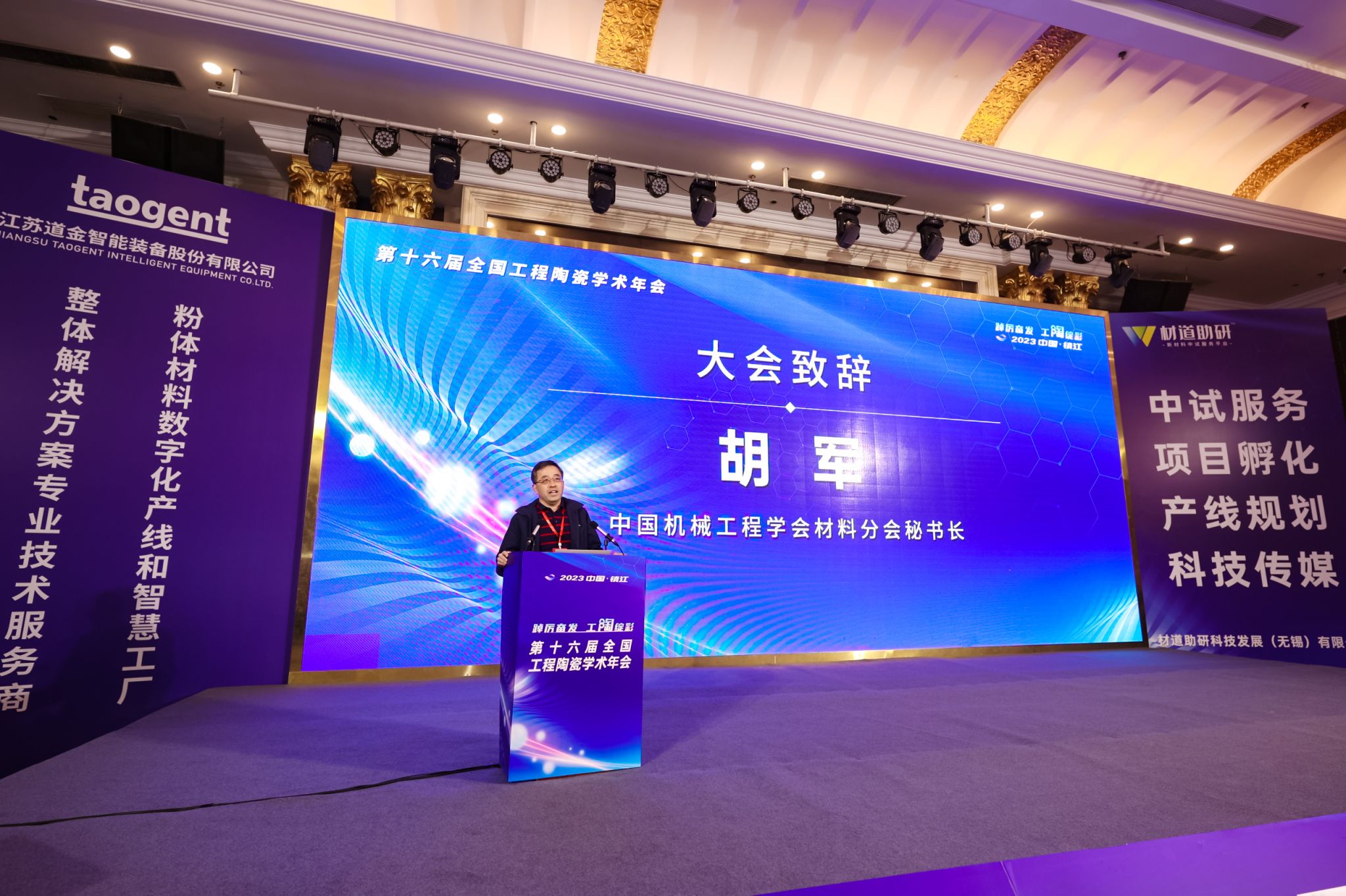 本次年会由中国机械工程学会材料分会、开云网页版登录入口、江苏省硅酸盐学会联合主办,材道助研科技发展(无锡)有限公司承办。4月15日,中国工程院院士、上海硅酸盐研究所教授董绍明,工程陶瓷专业委员会理事长肖汉宁、中国机械工程学会材料分会秘书长胡军、中科院上海高等研究院院长黄政仁、我校副校长赵玉涛等出席开幕式,开幕式由我校材料学院院长乔冠军主持。