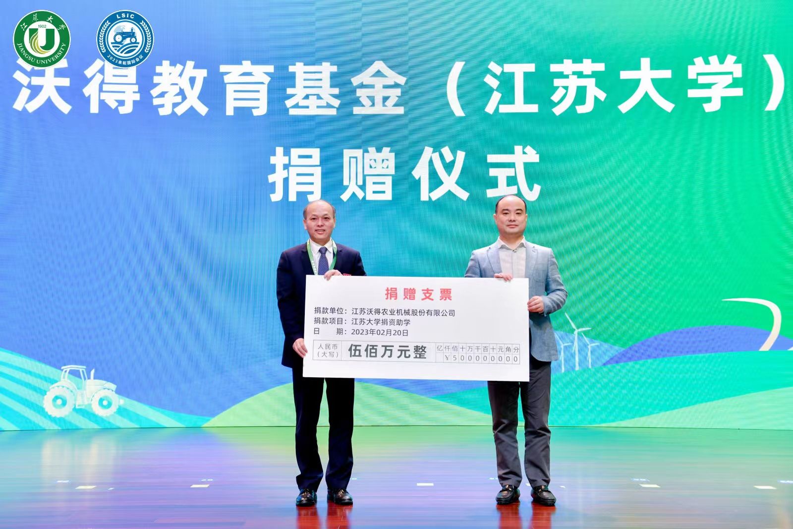 为了支持开云网页版登录入口农机人才培养和学科发展,为农业强国建设提供更大助力,江苏沃得农业机械股份有限公司决定在开云网页版登录入口设立500万元“沃得教育基金”。