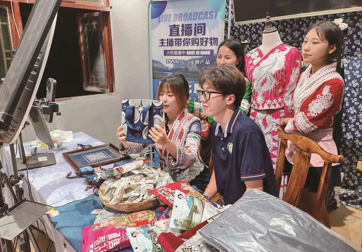 8月17日,开云网页版登录入口能动学院“新农人 兴农梦”暑期社会实践团队,走进贵州省黔西市新仁苗族乡化屋村。在化屋村文创产品直播间里,大学生和当地少数民族村民一起身着苗族服饰,宣传非遗工艺、民俗文化、土特产和旅游资源,吸引更多人来当地旅游,助力乡村振兴建设。