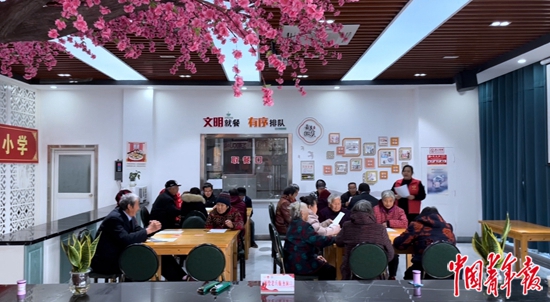 嶂山村“老年小学”成立于2021年3月,学员主要是村里的老党员、空巢老人。“老年小学”开设的课程包括绘画、音乐、跳舞、体育、手工制作等,由嶂山村党员、团员志愿者和共建单位党员志愿者授课辅导。“老年小学”课时可积分到村里的“时间银行”换领生活用品,学员也可用阅读时长来此换领礼品。