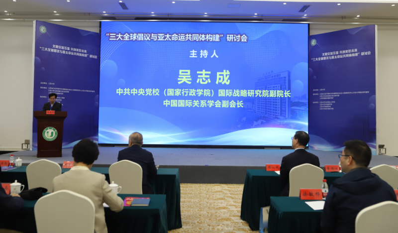上海市美国问题研究所学术委员会副主任李晓健在致辞中表示:“当前传统与非传统安全风险交织,全球经济复苏动力不足,南北之间鸿沟加大,脱钩断链、零和思维泛起,气候变化治理赤字尚未填补,数字治理和人工智能等新课题又凸显出来。同时,美国将我国作为头号战略竞争对手,对华全面围堵和遏制打压持续升级,世界和中国都急需新的应对和解决方案。在此背景下,学习和研究习近平主席构建人类命运共同体理念和具有全球影响的三大倡议极为重要,非常及时。如何将三大倡议在构建亚太命运共同体的过程中落实好,更是当下十分紧迫的课题。”