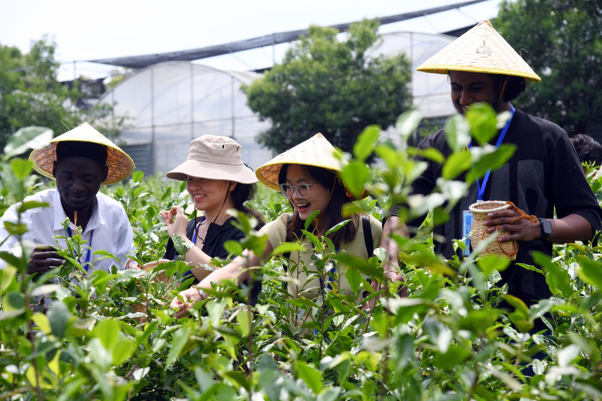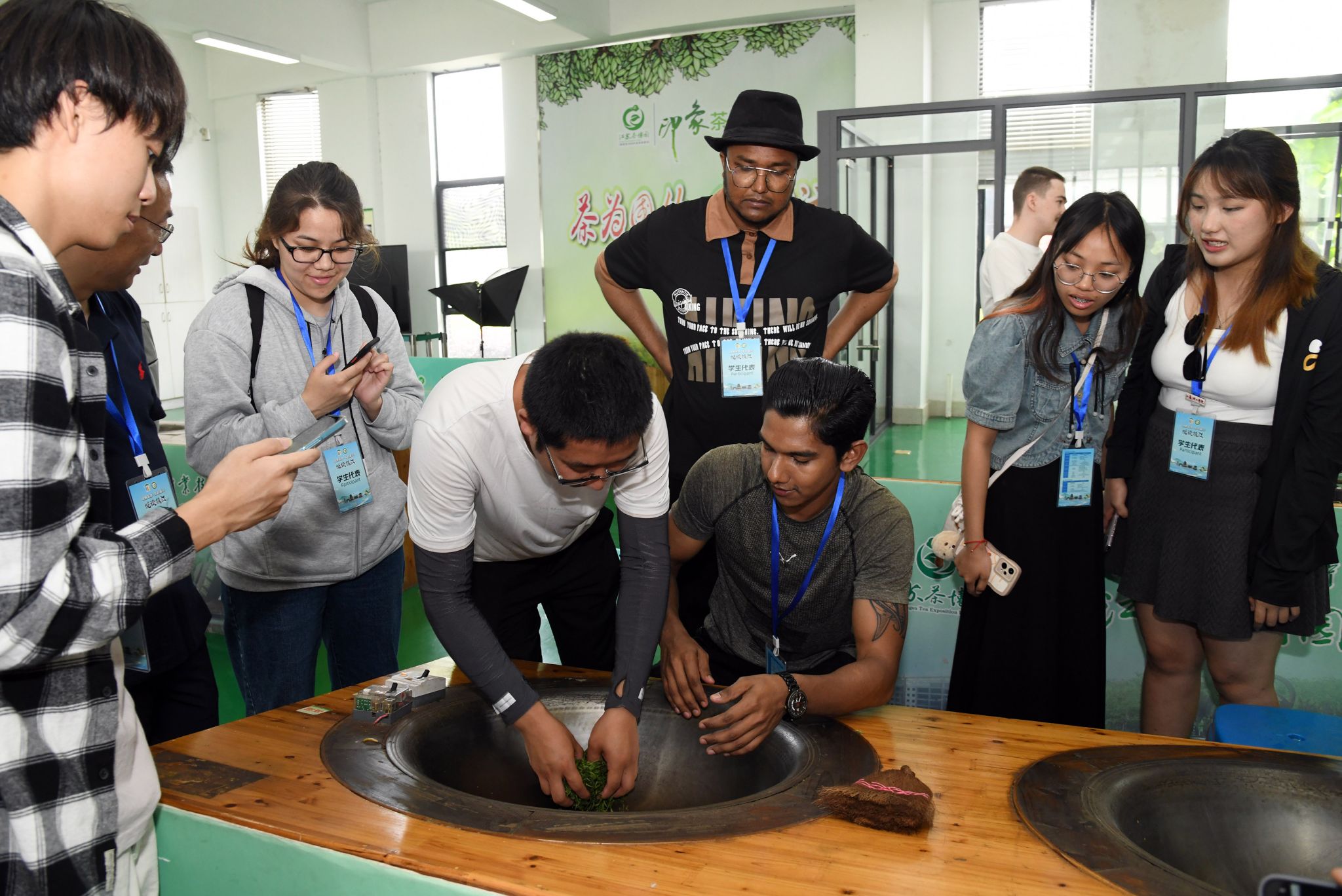 开云网页版登录入口海外教育学院直属党支部书记王丽敏为留学生讲授茶文化知识,留学生前往江苏茶博园体验了采茶、制茶、品茶等全过程。