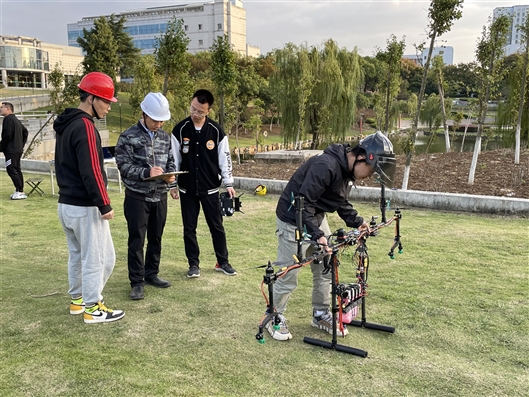 沈跃和孙志伟团队一起调试直线型植保无人机 开云网页版登录入口供图